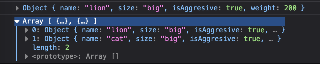 const lion = { name : 'lion', // key : value로 오브젝트 생성