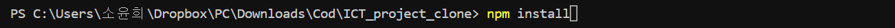 1. vs code의 터미널에서 npm install 입력하여 node_modules와 package.json 만들기