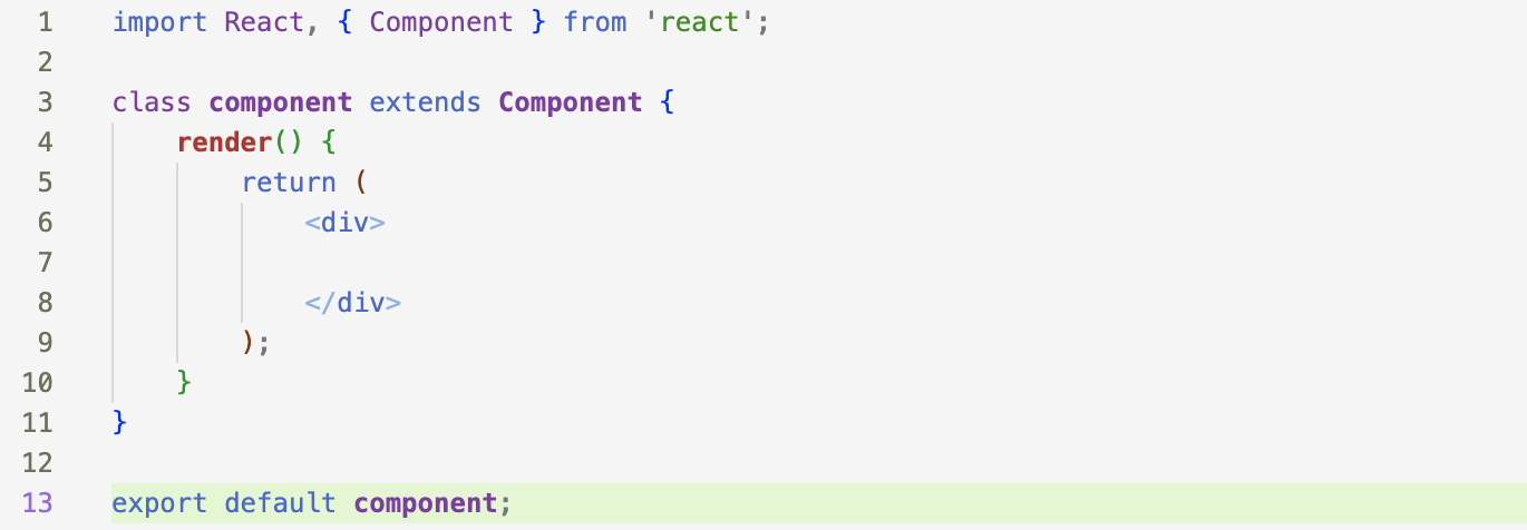 클래스 컴포넌트 (rcc라는 단축어로 만든 컴포넌트) 안을 살펴보면 두 가지 부분으로 나눌 수 있는데, 아래와 같다.