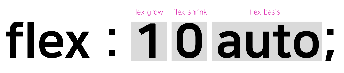 컨테이너에 사용할 수 있는 속성은 flex-direction, justify-content, align-items가 있으며 flex-item에 사용할 수 있는 속성은 flex-grow, flex-shrink,flex-basis가 있다. flex-item에 부여할 수 있는 속성은 축약형으로 사용할 수 있는데, 다음과 같다.