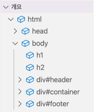 <div> 태그는 레이아웃을 나누는데 쓰인다. 보통 웹사이트의 경우 크게 세가지의 섹션의 와이어 프레임으로 나뉘게 되는데, 최상단 메뉴를 header, 컨텐츠가 디스플레이되는 영역을 main/container/contents/body 최하단 사이트 정보가 기입되는 영역을 footer라고 부른다.