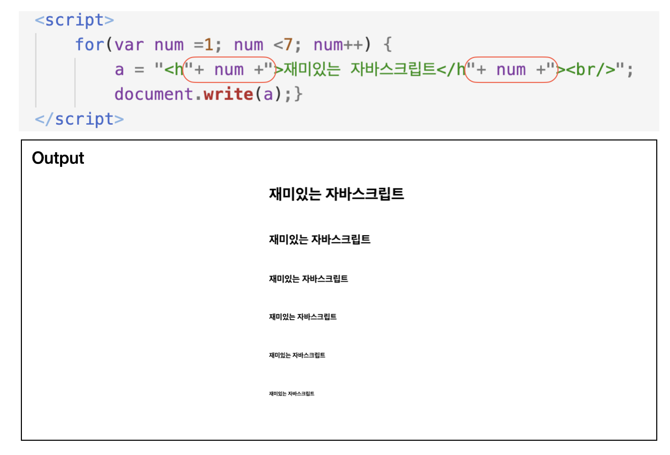 document.write("<br />"); // 개행 명령어